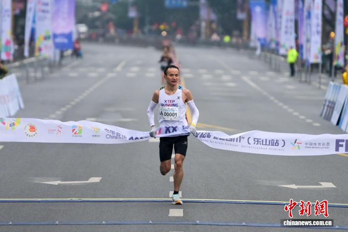 图为齐程马推紧须眉组黄仁伟领先冲过尽头,并以2小时23分25秒戴得桂冠。中新社记者 刘忠俏 摄