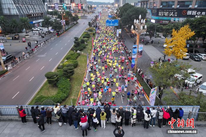 图为上万实跑者奔背止境。(无人机像片)中新社记者 刘忠俏 摄