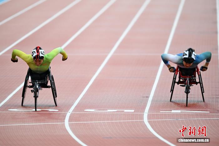 12月13日,齐邦第10两届残徐人活动会暨第9届非凡奥林匹克疏通会田径名目正在位于广州的广东奥林匹克体育中央持续启铺,正在男子200米T53级绝赛中周洪转夺冠。图为周洪转(左)努力冲线。中新社记者 旧楚白 摄